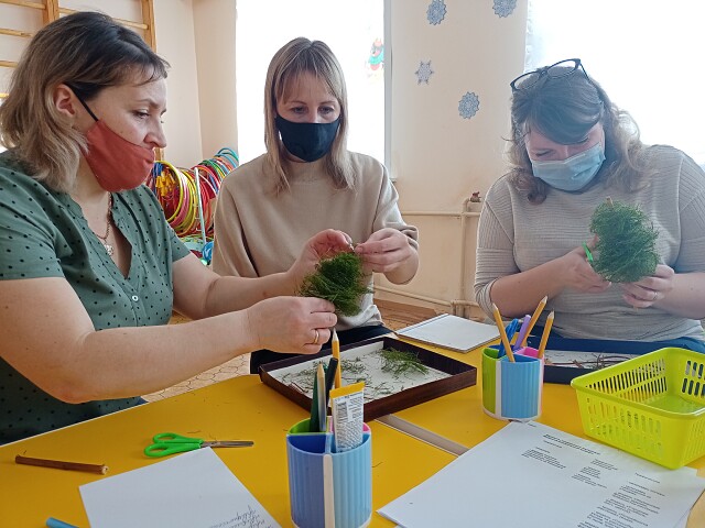 В рамках годового плана в детском саду №14 «Рябинка» прошел мастер-класс на тему: «Роль моделирования в экологическом воспитании дошкольников ». Большое значение имеет использование моделей и деятельности моделирования в работе с детьми дошкольного возраста. Именно модели являются средством перехода от наглядно-действенного и наглядно-образного познания мира к познанию схематическому, творческому, обеспечивающему ребенку возможность опосредованным путем осваивать окружающий мир. В ходе мастер-класса педагог Иванченко Е.Н. поделилась опытом работы «Использование технологии моделирования в работе с дошкольниками». Показала как можно из подручного материала изготовить модель леса, которую можно использовать в процессе ознакомления дошкольников с лесом нашего края.